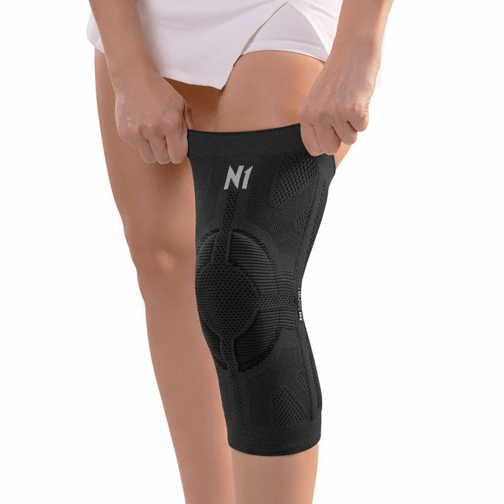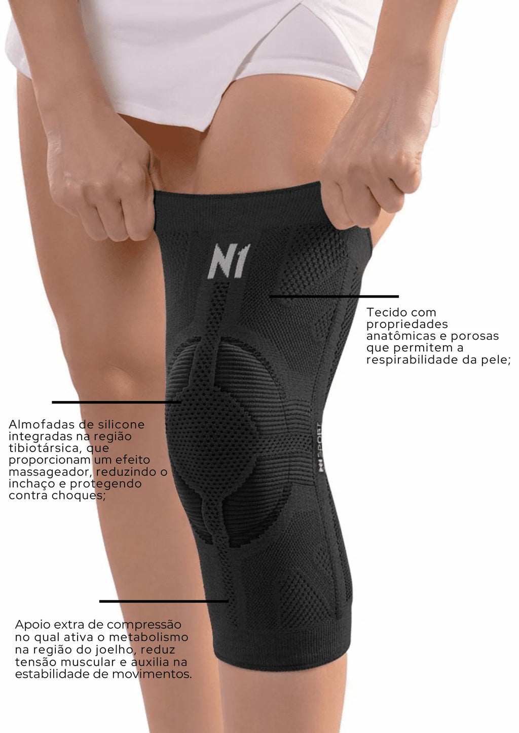 A Joelheira N1 PRO é uma órtese usada para prevenção e recuperação de lesões, através da estimulação proprioceptiva e neuromuscular, baseada na compressão graduada.